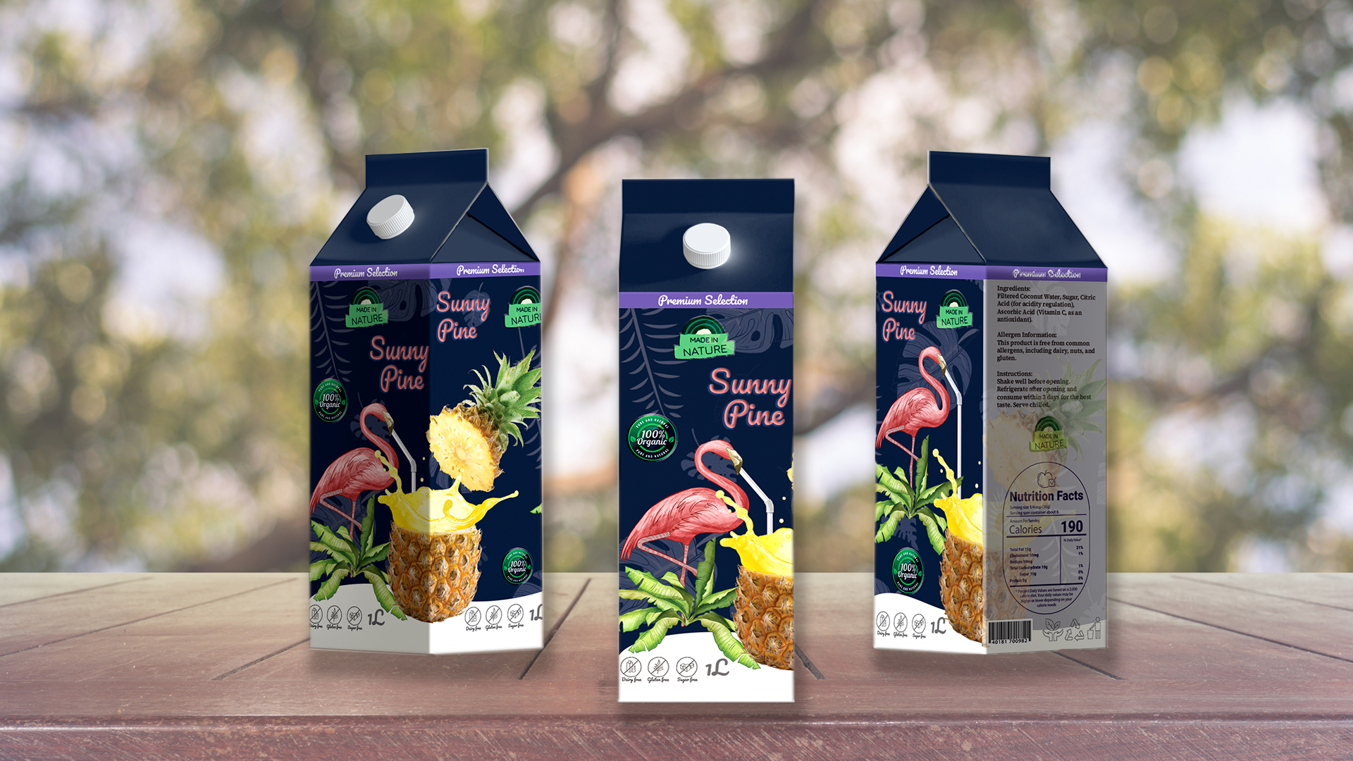 Разработване на серия опаковки за сокове с различни вкусове, като се подчертае натуралността на съставките, цветовата свежест и визуалната разпознаваемост на бранда върху рафта.